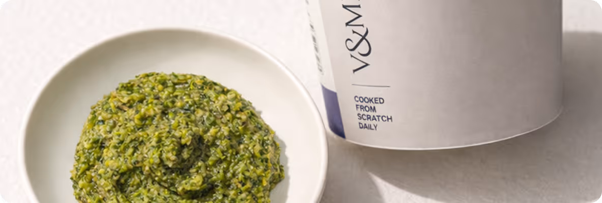 We started V&Me because we couldn't find food good enough for our own children - so we built a kitchen in Battersea and hired fine-dining chefs. Every meal is cooked fresh that morning. Not batch-produced, never frozen. Just proper food, made daily, like you would if you had the time.